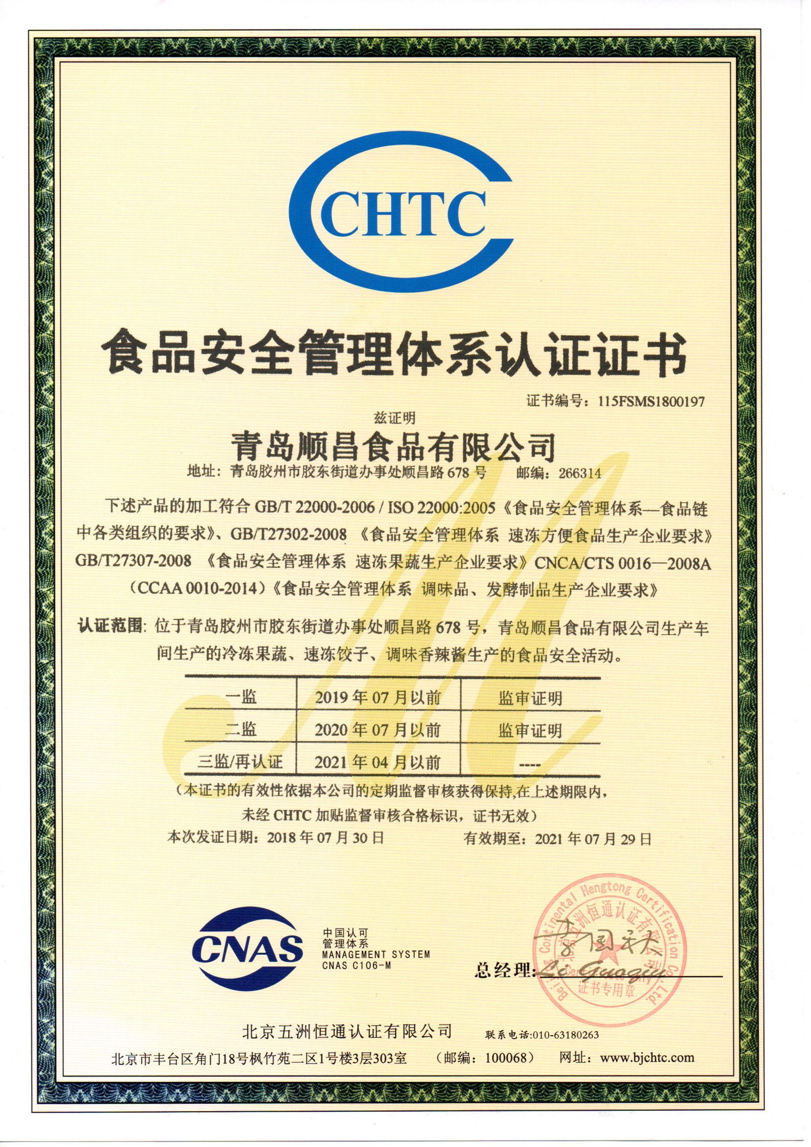 山東省の農(nóng)業(yè)工業(yè)化の重點(diǎn)企業(yè)、山東省食品安全模範(fàn)企業(yè)、ハイテク企業(yè)、山東省食品衛(wèi)生評(píng)判のA級(jí)企業(yè)、「喜満年」ブランド創(chuàng)設(shè)、青島安全生産先進(jìn)単位、青島稅関A級(jí)輸出企業(yè) 、青島輸入輸出誠(chéng)信企業(yè)、膠州市慈善企業(yè)などの名譽(yù)稱號(hào)を得ております。