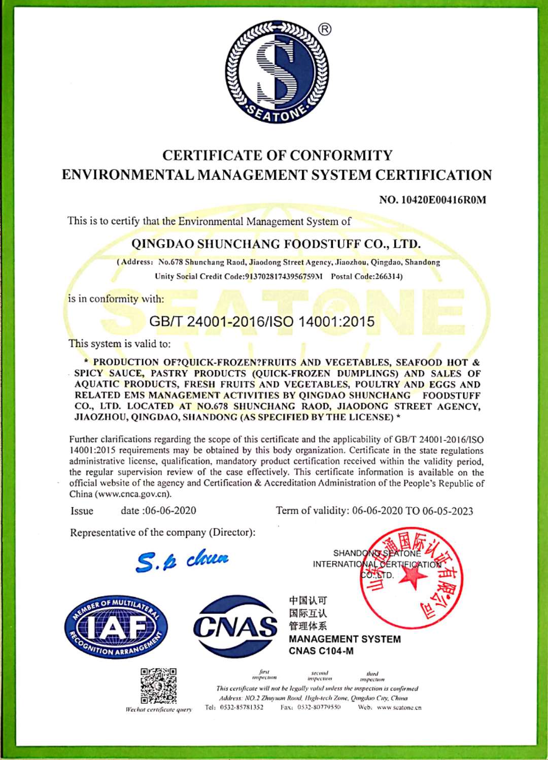 環(huán)境管理體系認(rèn)証証明書